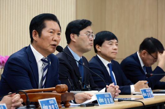 민주당은 이날 오전 충남 서산 서산축산종합센터 대회의실에서 민생 현장 최고위원회의를 열고 "대전·충남, 충남·대전 행정통합 반드시 이루겠다"고 밝혔다. 정 대표는 "국회에서 조속한 시일 안에 법을 통과시키고 6·3 지방 선거는 통합시로 치를 수 있도록 속도를 내도록 하겠다"고 말했다.