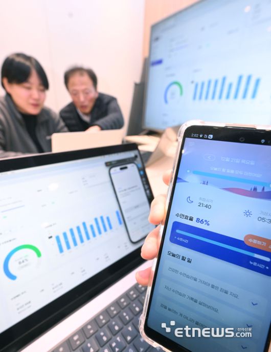 서울 강남구 에임메드에서 직원들이 불면증 치료제 '솜즈'를 테스트를 하고 있다. 박지호기자 jihopress@etnews.com |
