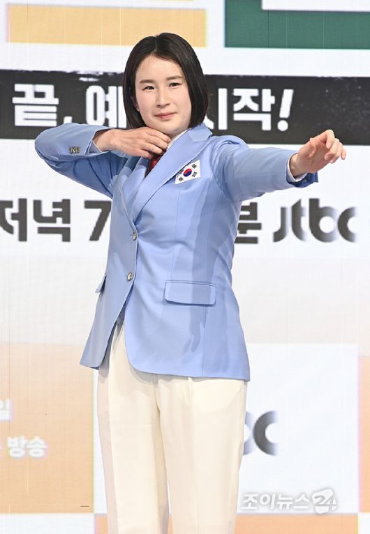 [조이뉴스24 곽영래 기자]전 양궁선수 기보배가 14일 서울 여의도 페어몬트 앰배서더 서울에서 열린 JTBC 신규 예능 '예스맨' 제작발표회에서 포즈를 취하고 있다.