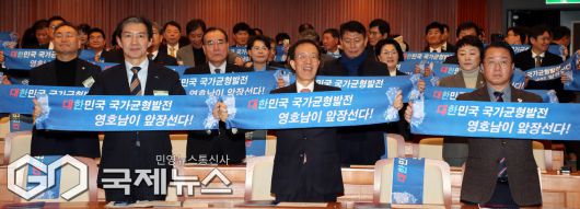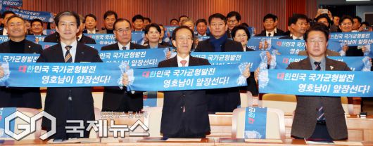 (서울=국제뉴스) 이석연 대통령 직속 국민통합위원장과 조국 조국혁신당 대표가 14일 오후 서울 여의도 국회 박물관에서 열린 '2026 국가균형발전 선도 영·호남 공동선포식 및 신년교류회'에서 국민의례하고 있다./사진=이용우 기자