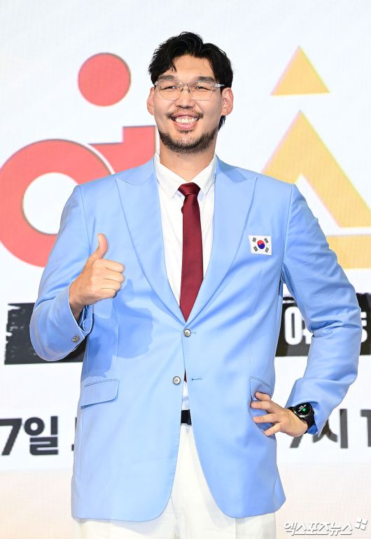 이날 제작발표회에 참석한 하승진이 포토타임을 갖고 있다.