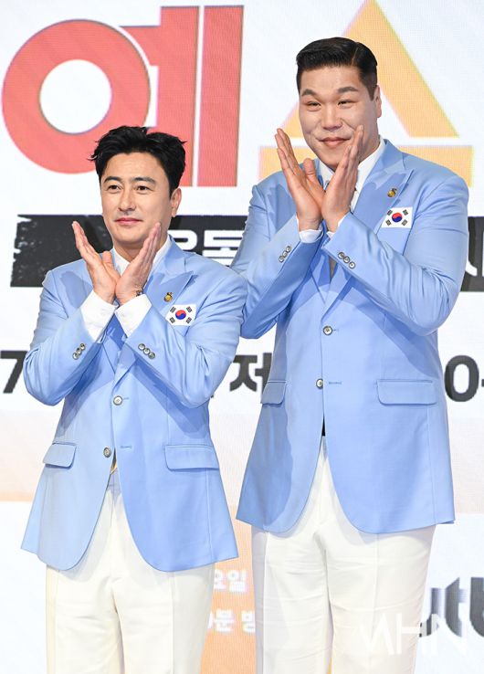 (MHN 이현지 기자) 안정환, 서장훈이 14일 오후 서울 영등포구 페어몬트 앰배서더 서울에서 진행된 JTBC의 신규 예능 '예스맨' 제작발표회에 참석해 포토타임을 갖고 있다.