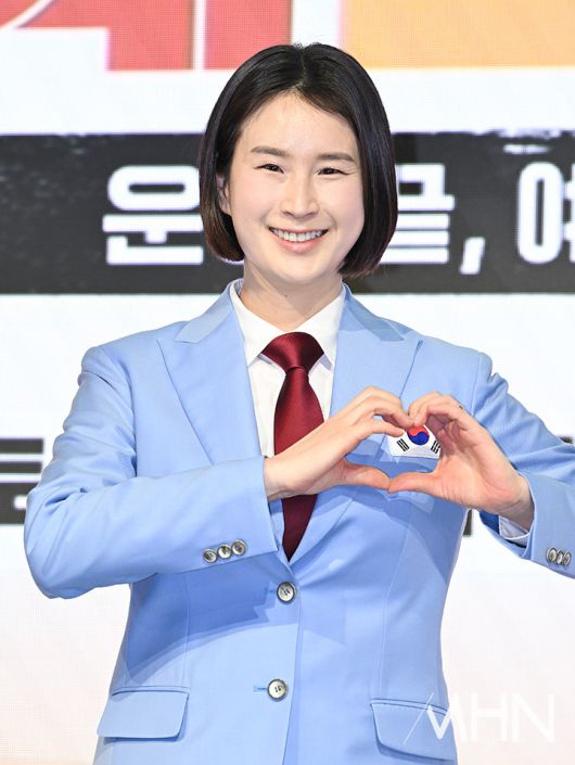 (MHN 이현지 기자) 양궁선수 기보배가 14일 오후 서울 영등포구 페어몬트 앰배서더 서울에서 진행된 JTBC의 신규 예능 '예스맨' 제작발표회에 참석해 포토타임을 갖고 있다.