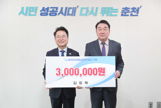 [스포츠서울ㅣ김기원기자]김창혁 춘천바이오산업진흥원장은 14일 춘천시청 접견실에서 장학금 300만원을 (재)춘천인재육성장학재단(이사장 육동한)에 기탁했다. 이번 기탁은 지역 인재 육성과 교육 발전을 위한 뜻을 모은 것으로 기탁자와 재단·시 관계자들이 함께한 가운데 진행됐다.