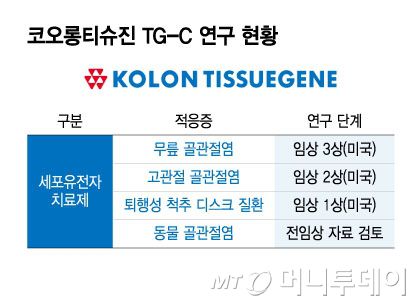 코오롱티슈진 TG-C 연구 현황/그래픽=윤선정 |