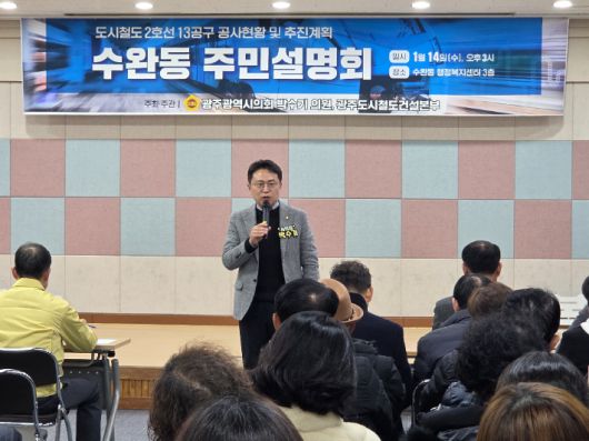 광주광역시의회 박수기 의원과 광주도시철도건설본부는 14일 수완동에서 주민설명회를 열고 13공구 공사 중단 배경을 설명했다. 건설본부는 수완지하차도 인근 약 700m 구간에 한전 지중선과 열수송관 등 주요 지장물이 밀집돼 있고, 주변에 고층 건물이 인접해 기존 저심도 공법으로는 구조적·안전적 시공이 어렵다고 밝혔다.