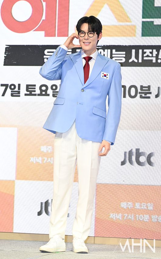 (MHN 이현지 기자) 전 수영선수 박태환이 14일 오후 서울 영등포구 페어몬트 앰배서더 서울에서 진행된 JTBC의 신규 예능 '예스맨' 제작발표회에 참석해 포토타임을 갖고 있다.