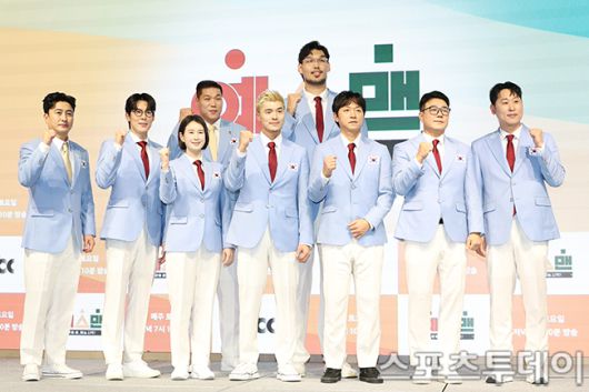 [스포츠투데이 권광일 기자] 안정환, 박태환, 기보배, 서장훈, 김영광, 하승진, 김남일, 이형택, 윤석민이 14일 서울 영등포구 여의도 페어몬트 앰배서더 서울에서 열린 JTBC '예스맨' 제작발표회에 참석해 포즈를 취하고 있다. 2026.01.14. [스포츠투데이 권광일 기자 ent@stoo.com]