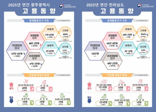 2025년 한 해 동안 광주와 전남의 고용 지표가 엇갈린 흐름을 보였다. 광주는 취업자 수가 소폭 증가한 반면, 전남은 취업자 감소세를 보이며 지역 간 고용 '희비'가 교차했다.