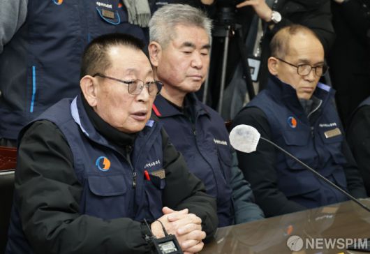 [서울=뉴스핌] 양윤모 기자 = 박점곤 서울시버스노동조합 위원장이 서울시버스 노사의 임금협상 결렬로 총파업 돌입 이틀째인 14일 오후 서울 영등포구 서울지방노동위원회 주관으로 제2차 사후조정회의 참석해 발언을 하고 있다. 이번 협상의 핵심 쟁점은 통상임금 범위, 임금체계 개편, 임금 인상률(노조는 3%·사측은 10.3% 인상안 제시) 이다. 2026.01.14 yym58@newspim.com