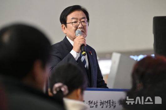 [광주=뉴시스] 이영주 기자 = 문인 광주 북구청장이 13일 오전 광주 서구 광주시의회에서 열린 새로운광주포럼의 토론회 '광주·전남 행정통합 시도민과 함께 길을 묻다'에 참여해 발표하고 있다. 2026.01.13. leeyj2578@newsis.com |