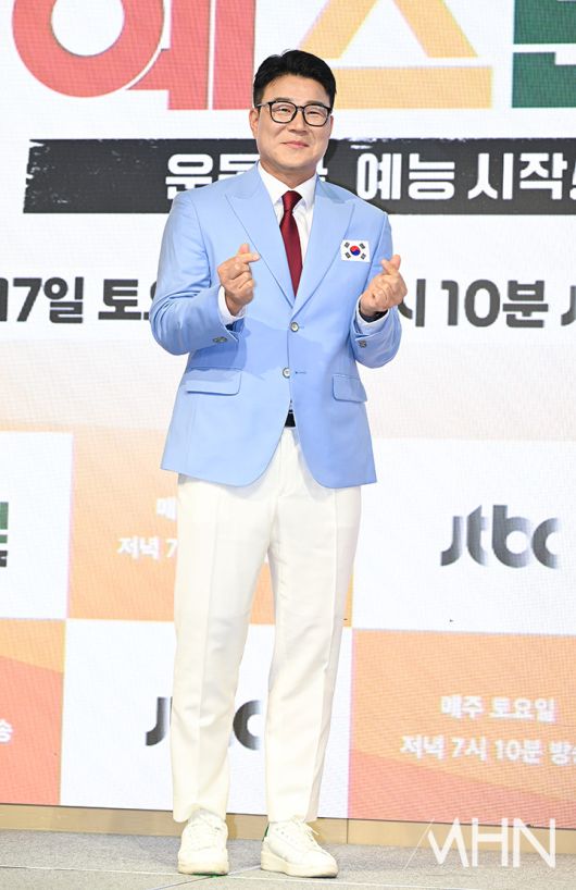 (MHN 이현지 기자) 전 테니스 선수 이형택이 14일 오후 서울 영등포구 페어몬트 앰배서더 서울에서 진행된 JTBC의 신규 예능 '예스맨' 제작발표회에 참석해 포토타임을 갖고 있다.