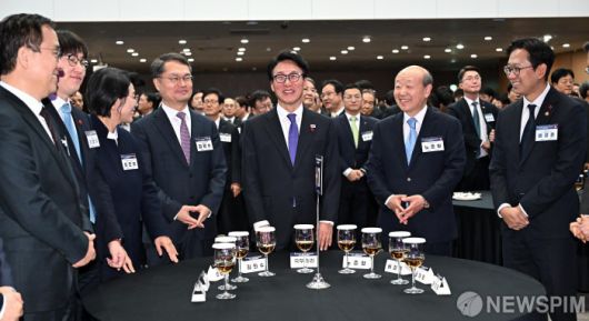 [서울=뉴스핌] 정일구 기자 = 김민석 국무총리가 14일 오후 서울 강남구 한국과학기술회관에서 열린 2026 과학기술인·정보방송통신인 신년인사회에서 참석자들과 대화하고 있다. 2026.01.14 mironj19@newspim.com