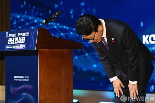 [서울=뉴스핌] 정일구 기자 = 김민석 국무총리가 14일 오후 서울 강남구 한국과학기술회관에서 열린 2026 과학기술인·정보방송통신인 신년인사회에서 참석자들을 향해 인사하고 있다. 2026.01.14 mironj19@newspim.com