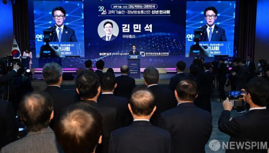 [서울=뉴스핌] 정일구 기자 = 김민석 국무총리가 14일 오후 서울 강남구 한국과학기술회관에서 열린 2026 과학기술인·정보방송통신인 신년인사회에서 인사말을 하고 있다. 2026.01.14 mironj19@newspim.com