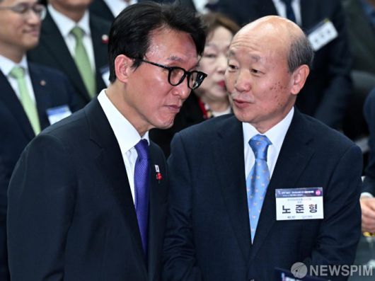 [서울=뉴스핌] 정일구 기자 = 김민석 국무총리가 14일 오후 서울 강남구 한국과학기술회관에서 열린 2026 과학기술인·정보방송통신인 신년인사회에서 노준형 한국정보방송통신대연합회장과 대화하고 있다. 2026.01.14 mironj19@newspim.com