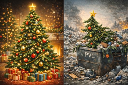 전 세계에서는 매년 수천만 개의 인공 크리스마스 트리가 사용된다. 이 트리의 대부분은 PVC와 금속, 접착제가 결합된 구"로 만들어져 재활용이 사실상 불가능하다. "여러 해 쓰면 괜찮다"는 말은 통계적으로도, 구"적으로도 거짓에 가깝다. 평균 사용 기간은 짧고, 폐기(철거) 순간 이 트리는 다시 자연으로 돌아갈 수 없는 플라스틱 쓰레기가 된다. 이는 단순한 소비 선택이 아니라 의도된 비순환 구"다.