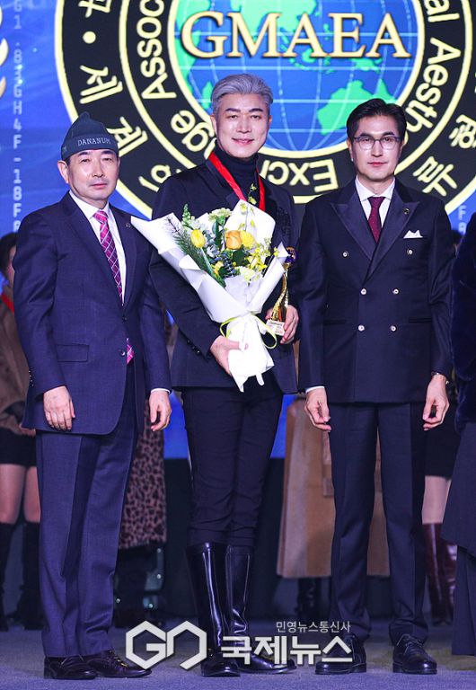 (인천=국제뉴스) 이대웅 기자 = 세계의료미용교류협회 GMAEA 2025(Global Medical Aesthetic Exchange Association 2025)가 지난 29일 인천 인스파이어 호텔 리조트에서 성대하게 개최됐다. 이날 글로벌 최강예술 감독대상을 수상한 국제대 평생교육원 시니어 모델 연기과정 박종선 총괄교수가 기념 포즈를 취하고 있다.