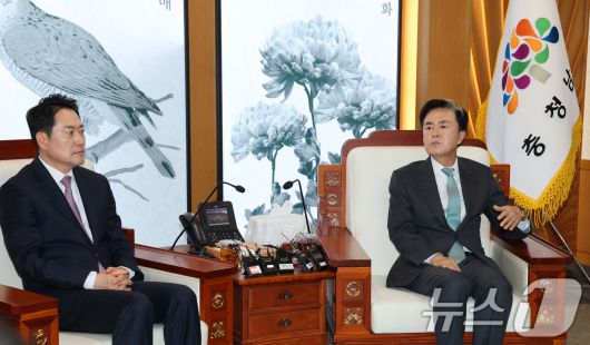 (홍성=뉴스1) 김기태 기자 = 김태흠 충남지사가 14일 오후 충남도청에서 장동혁 국민의힘 대표와 대전충남 행정통합 관련 정책협의에서 발언하고 있다. 2026.1.14/뉴스1