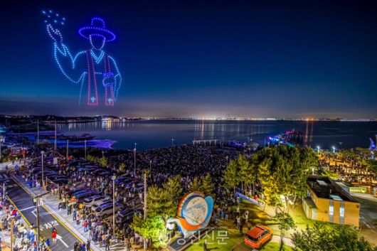 충남 당진 삽교호관광단지가 대규모 드론 군집 비행과 음악, 스토리텔링을 가미한 야간 라이트 쇼로 자리 매김하고 있다. 당진시 |