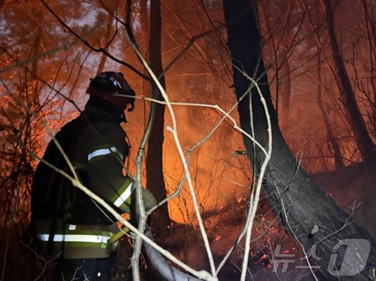 지난 10일 오후 3시 14분쯤 경북 의성군 의성읍 비봉리의 한 야산에서 대형 산불이 발생해 소방 당국이 대응2단계를 발령하고 야간 진화에 나서고 있다. (경북소방안전본부 제공. 재판매 및 DB 금지) 2026.1.10/뉴스1 ⓒ News1 남승렬 기자 |