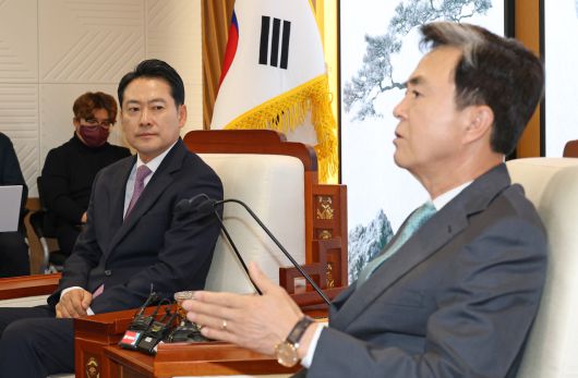 장동혁 국민의힘 대표가 14일 오후 충남 홍성 충남도청을 찾아 김태흠 충남지사와 대화하고 있다. [연합] |