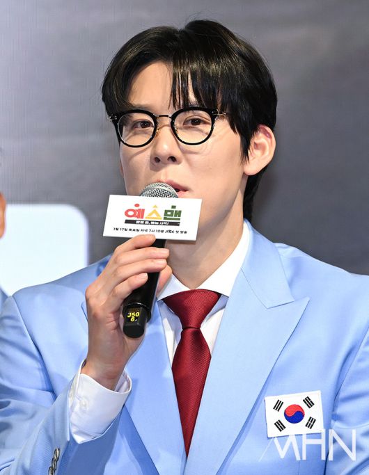 (MHN 이현지 기자) 전 수영선수 박태환이 14일 오후 서울 영등포구 페어몬트 앰배서더 서울에서 진행된 JTBC의 신규 예능 '예스맨' 제작발표회에 참석해 인사말을 하고 있다.