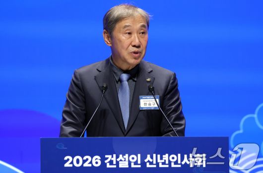 (서울=뉴스1) 김명섭 기자 = 한승구 대한건설단체총연합회장이 14일 오후 서울 강남구 건설회관에서 열린 2026 건설인 신년인사회에서 신년사를 하고 있다. 2026.1.14/뉴스1