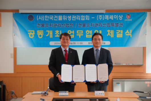 (사)한국건물위생관리협회와 전시 전문 기업 ㈜메쎄이상은 13일 한국건물위생관리협회 사무실에서 건물유지관리산업전의 공동 개최를 위한 협약을 체결했다.