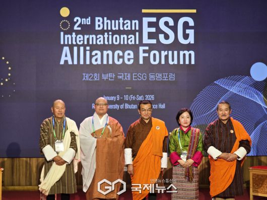 (부탄=국제뉴스) 유지현 기자 = 9일 부탄 팀푸시 부탄왕립대학교(RUB)에서 열린 제2회 부탄 국제 ESG 동맹포럼(The 2nd Bhutan International ESG Alliance Forum) 개막식에 참석한 내빈들.