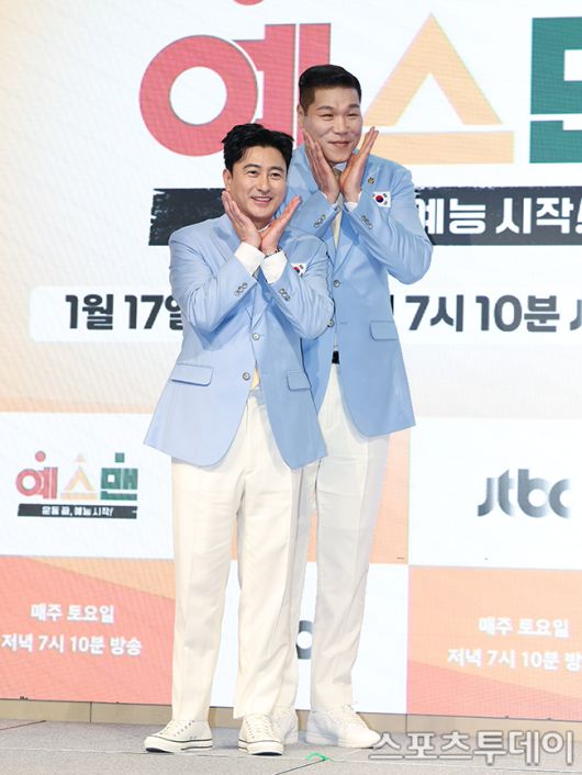 [스포츠투데이 권광일 기자] 방송인 안정환, 서장훈이 14일 서울 영등포구 여의도 페어몬트 앰배서더 서울에서 열린 JTBC '예스맨' 제작발표회에 참석해 포즈를 취하고 있다. 2026.01.14. [스포츠투데이 권광일 기자 ent@stoo.com]