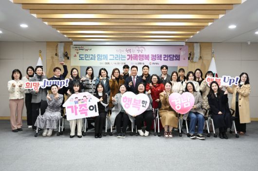 경상남도는 도청에서 신혼부부 등 도민 25명이 참여한 가운데 '가족행복 정책간담회'를 열었다고 14일 밝혔다. 결혼부터 임신, 출산, 육아에 이르기까지 생애주기별 정책의 빈틈을 찾고 개선 방안을 논의하고자 마련됐다.
