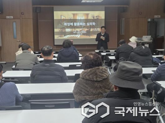 이번 특강에서는 사람의 감정과 선택, 반복되는 행동의 원리를 다양한 사례를 통해 살펴보며, 심리학이 취업 준비 과정뿐 아니라 일상생활 전반의 의사결정과 인간관계에도 영향을 미친다는 점을 이해할 수 있도록 구성됐다. 이날 특강에는 퇴직자 및 지역 주민 30여 명이 참석했다.