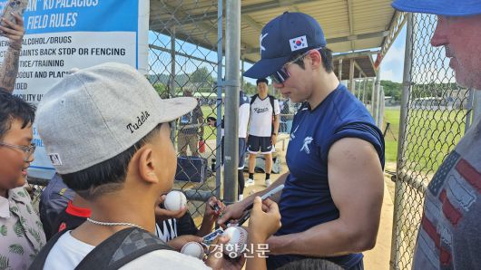 사이판 최고 인기 스타는 김혜성(27·LA 다저스)이다. 한국 야구를 모르는 이곳 꼬마들도 ‘다저스 KIM’은 안다. 월드베이스볼클래식(WBC) 대표팀 훈련이 끝나면 김혜성의 사인을 받으려는 사이판 야구 소년들이 길게 줄을 선다.