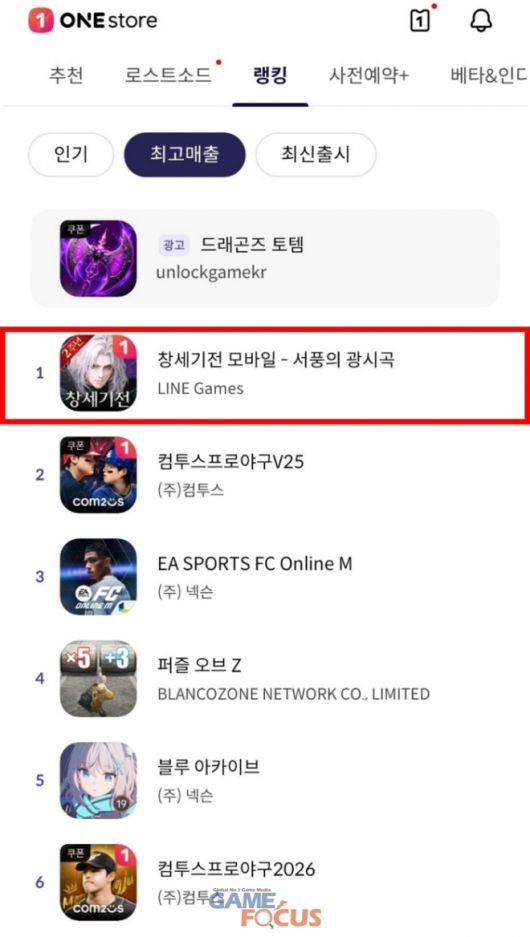 라인게임즈(공동대표 박성민, 조동현)는 미어캣게임즈(대표 남기룡)가 개발하고 자사가 서비스하는 모바일 SRPG ‘창세기전 모바일’이 원스토어 매출 순위 1위를 기록했다고 14일 밝혔다.