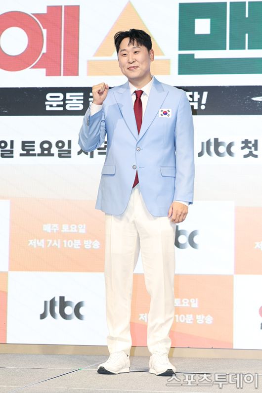 [스포츠투데이 권광일 기자] 방송인 윤석민이 14일 서울 영등포구 여의도 페어몬트 앰배서더 서울에서 열린 JTBC '예스맨' 제작발표회에 참석해 포즈를 취하고 있다. 2026.01.14.