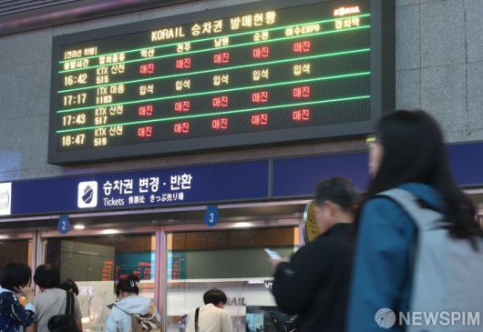 서울 용산역에 설치된 코레일 승차권 발매 현황판. [사진=뉴스핌 DB] |