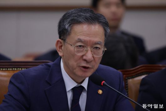 정성호 법무부 장관이 12일 오후 서울 여의도 국회에서 열린 법제사법위원회 전체회의에 출석해 의원 질의에 답하고 있다. 박형기 기자 onehsot@donga.com |