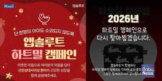 매일유업 앱솔루트 하트밀 캠페인 조기성료. ⓒ매일유업 |