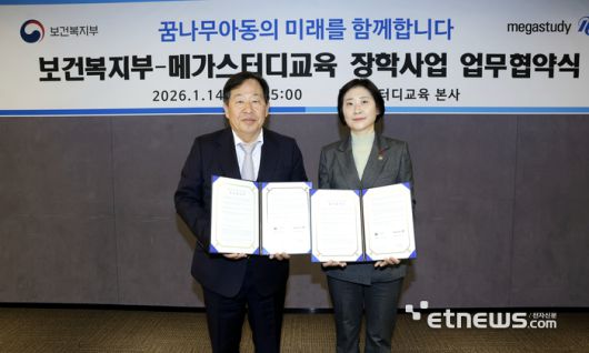이번 업무협약으로 메가스터디교육은 3년간 총 약 12억원의 재원을 후원한다. 재원은 2026년부터 연간 300명씩 중3~고2 보호대상아동을 대상으로 인터넷 강의 수강 기회를 제공한다. 이 중 본인의 학업성취 목표를 달성한 우수 학생을 대상으로 대학 1학기 등록금에 해당하는 장학금(1인당 400만원)을 지원하는데 활용할 계획이다.