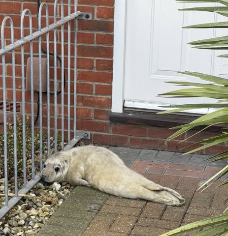 영국의 한 주택 앞마당에서 어미로부터 떨어져 길 잃은 새끼 바다표범이 발견됐습니다.