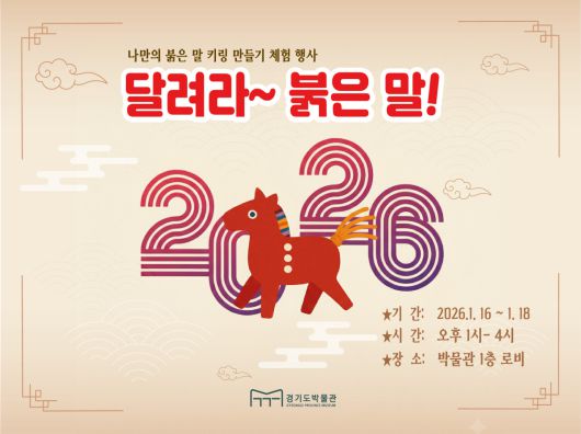 이번 행사는 새해를 상징하는 ‘붉은 말’의 의미를 현대적으로 재해석한 체험 프로그램으로, 관람객이 직접 ‘붉은 말 키링’을 만들어 보는 참여형 교육활동으로 진행된다. 붉은 말이 지닌 힘과 생동, 도약의 상징성을 담아 새해의 희망을 전하고, 경기도박물관 개관 30주년을 함께 기념하기 위해 기획됐다.