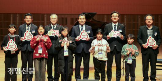 'mom편한 꿈다락'은 롯데와 구세군이 함께 노후화된 지역아동센터를 리모델링하는 사업으로 지난해 12월 100호점을 개관했다. 기념식 참가자들이 세리머니 후 기념촬영을 하고 있다. 뒷줄 왼쪽부터 황인식 사회복지공동모금회 사무총장, 김병윤 구세군 사령관, 임성복 롯데지주 커뮤니케이션실장, 신현성 국무총리실 민정실장, 임태근 보건복지부 사무관. 롯데지주 제공