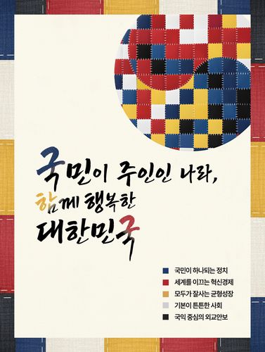 14일 군에 따르면 행정안전부는 지난 6일 새로운 국가비전 '국민이 주인인 나라, 함께 행복한 대한민국'과 5대 국정 목표를 모든 국가기관, 지방정부, 교육기관, 군부대에 사용하도록 안내했다.