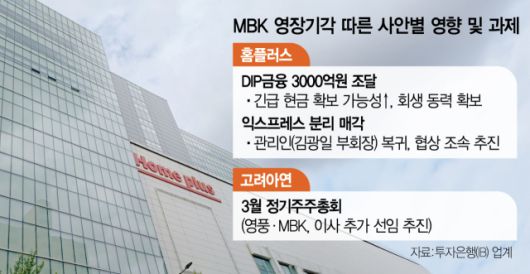사법 리스크 족쇄를 걷어낸 MBK는 다가오는 3월 고려아연 정기 주주총회에서도 반격을 준비할 것으로 예상된다. 영풍·MBK 연합은 현재 최윤범 회장 측과 비교해 11대 4로 열세인 이사회의 균형을 맞추는데 총력을 기울일 것으로 보인다. IB업계 관계자는 “MBK에게 시급한 과제는 홈플러스 회생 절차를 성공적으로 마무리 해내야 한다는 것”라며 “이를 바탕으로 대외 신뢰를 회복해야 고려아연 경영권 분쟁 등 남은 현안에서도 펀드 운용 동력을 유지할 수 있을 것”이라고 내다봤다.