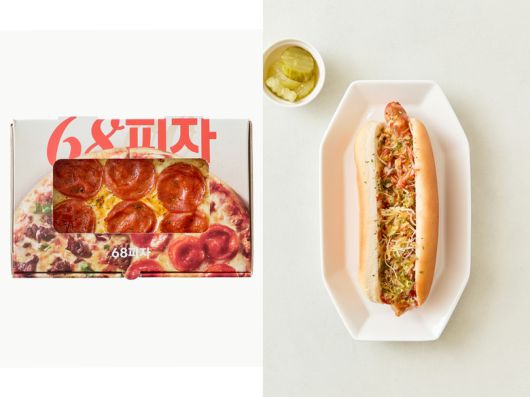 이번에 롯데마트가 선보이는 ‘68피자’는 불고기피자와 페퍼로니피자 등 2종으로 구성됐으며 가로 25cm·세로 15cm 크기의 타원형 피자로 제작했습니다. 국내산 밀로 제조한 도우와 모짜렐라 치즈를 기반으로 합니다. ‘15핫도그’는 국내산 돈육 함량 95% 이상의 소시지를 사용하고 피클과 양파를 더했습니다.
