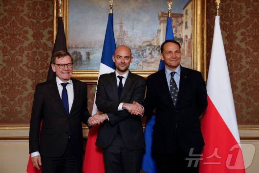 장-노엘 바로 프랑스 외무장관(가운데)이 7일(현지시간) 프랑스 파리에서 요한 바데풀 독일 외무장관, 라도스와프 시코르스키 폴란드 외무장관과 회담을 가졌다. 2025.1.7./뉴스1 ⓒ 로이터=뉴스1 ⓒ News1 이창규 기자 |