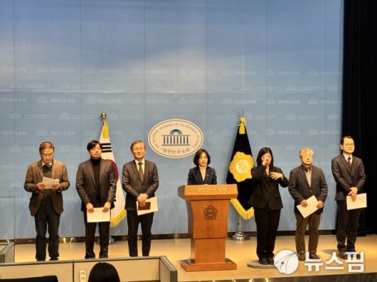 [서울=뉴스핌] 이바름 기자 = 14일 오전 국회소통관에서 총리실 산하 검찰개혁추진단 자문위원회 위원 6인이 사퇴 기자회견을 하고 있다. 왼쪽부터 김필성 변호사, 장범식 변호사, 한동수 변호사, 박은정 조국혁신당 의원, 서보학 교수, 황문규 교수 2026.01.14 right@newspim.com |