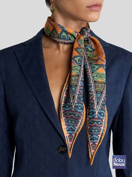 총 3가지 프린트로 선보이며, 에트로 특유의 감각적인 패턴 플레이와 컬러 조합이 돋보여 클래식하면서도 현대적인 무드를 동시에 담아낸다. 다이아몬드 형태의 실루엣은 목에 두르거나 헤어 액세서리, 가방 장식 등 다양한 방식으로 연출할 수 있어 활용도가 높다.