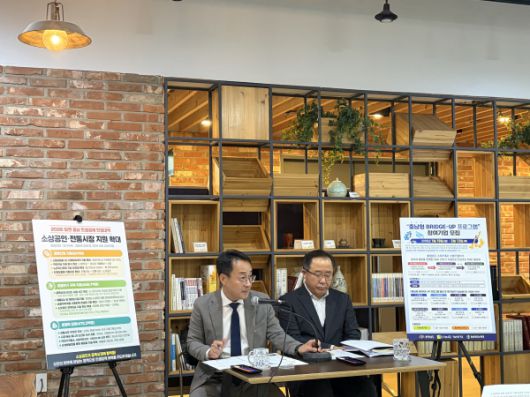 전병규 경제정책과장(왼쪽), 이상모 산업육성과장(오른쪽)/[사진=충남도][충남=팍스경제TV] 충남도가 새해를 맞아 소상공인과 전통시장의 경영 안정을 돕고 골목상권에 활력을 불어넣고자 지원 정책을 확대합니다.